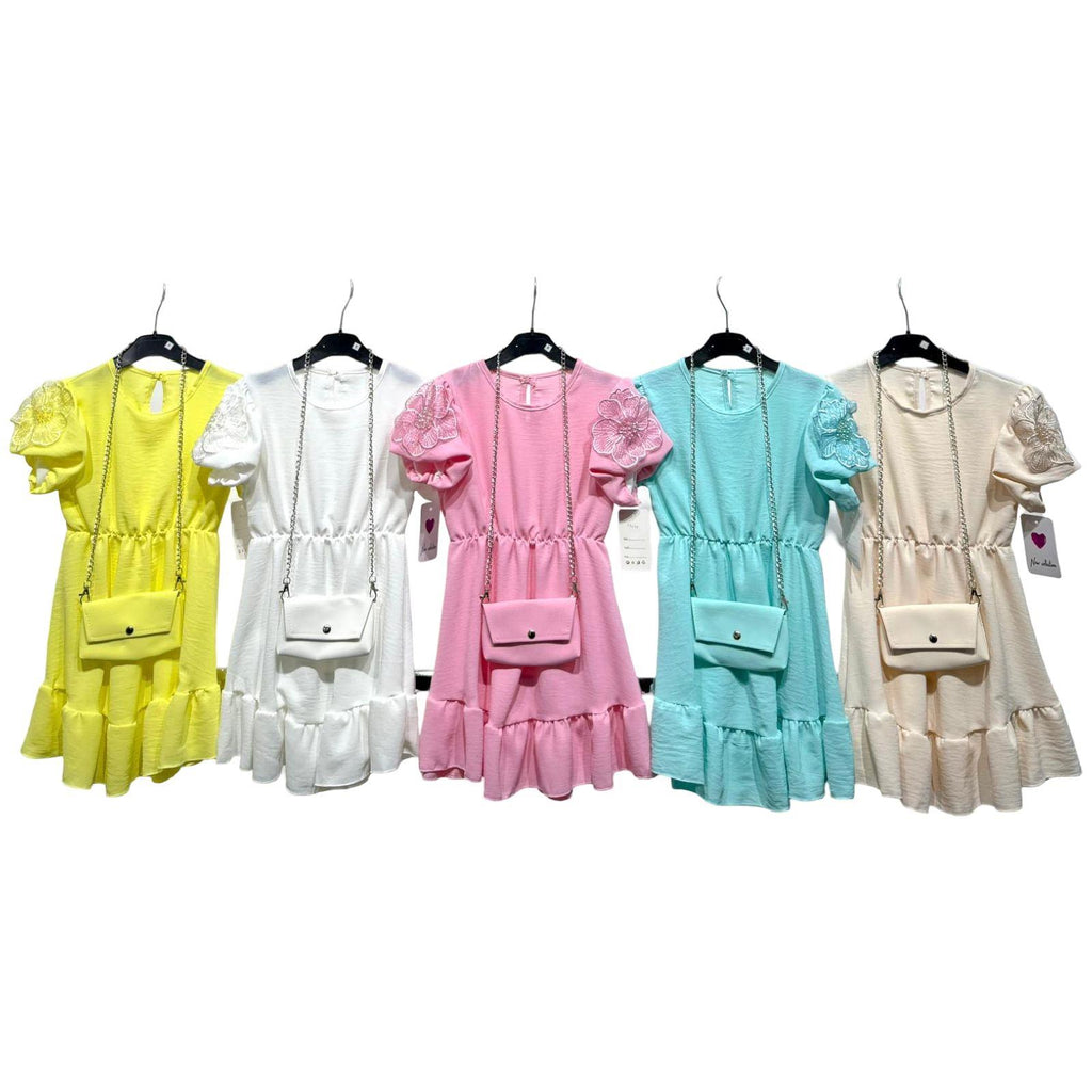 TTC JUNE Girls Flower And Pearl Detail Dress With Matching Bag
