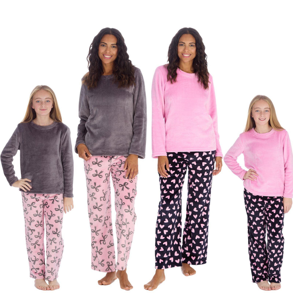 TTC BOWS AND HEARTS Girls And Ladies Matching Plush Fleece Pyjamas
