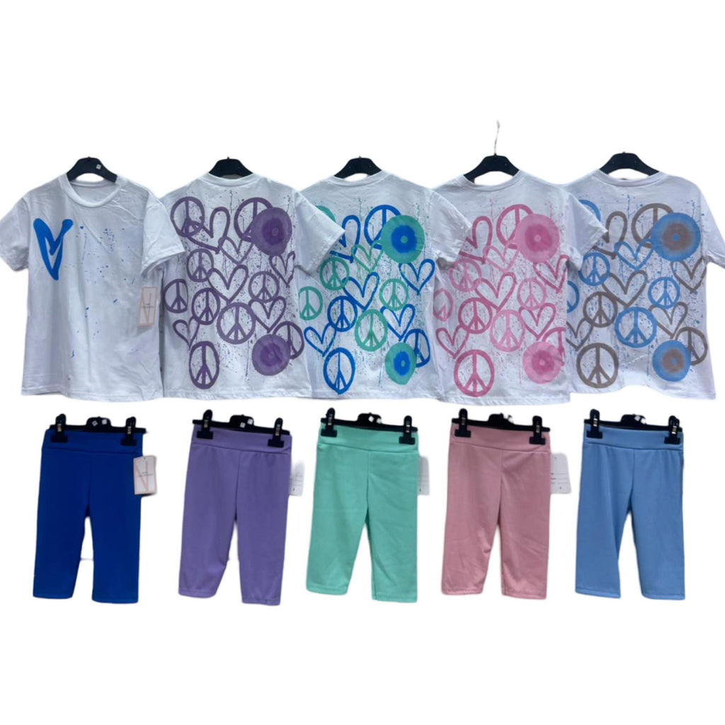 Girls Spray Paint Effect T-Shirt And Cycling Shorts Set 9050